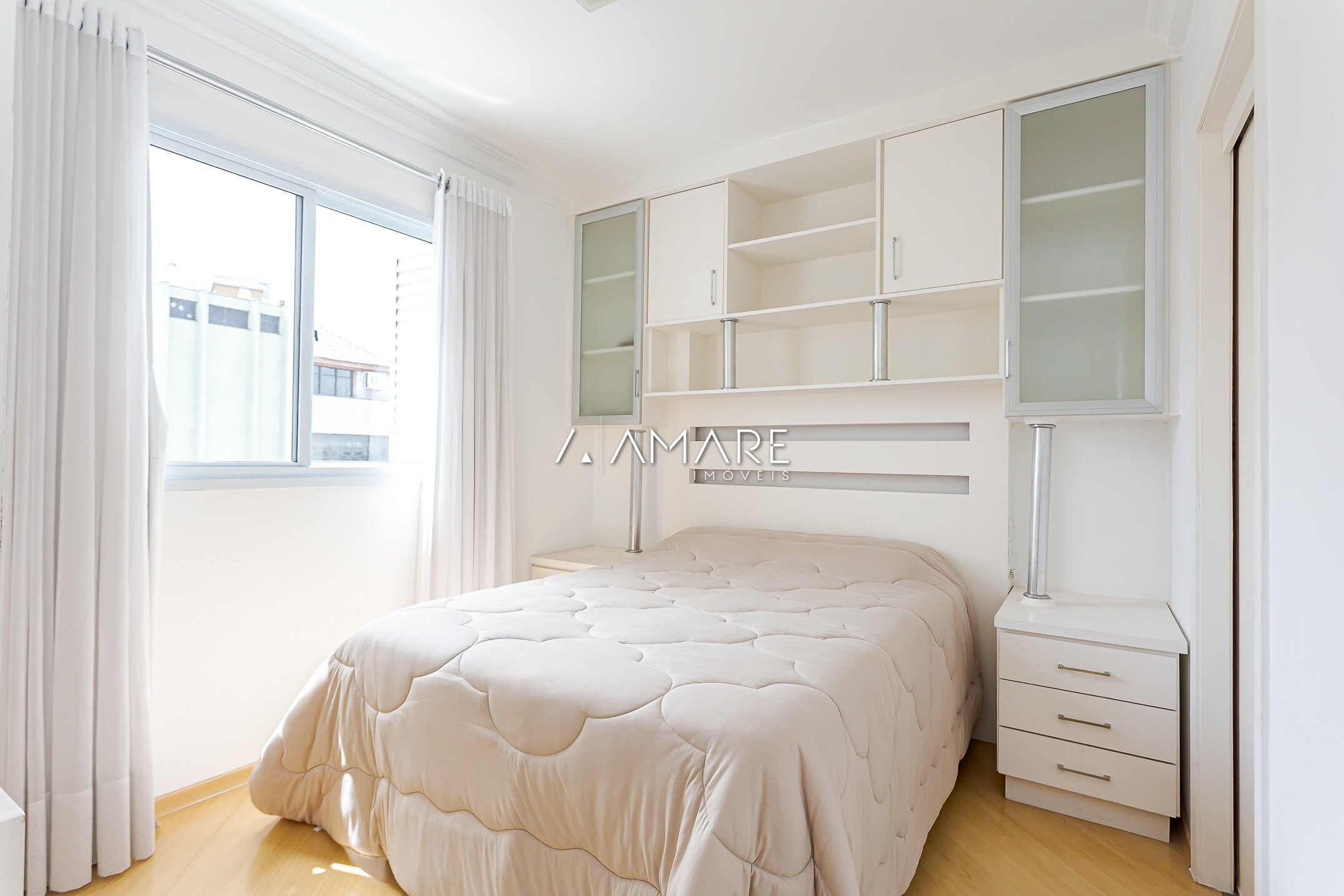 01 dormitorio com armários planejados, ventilado e ensolarado;