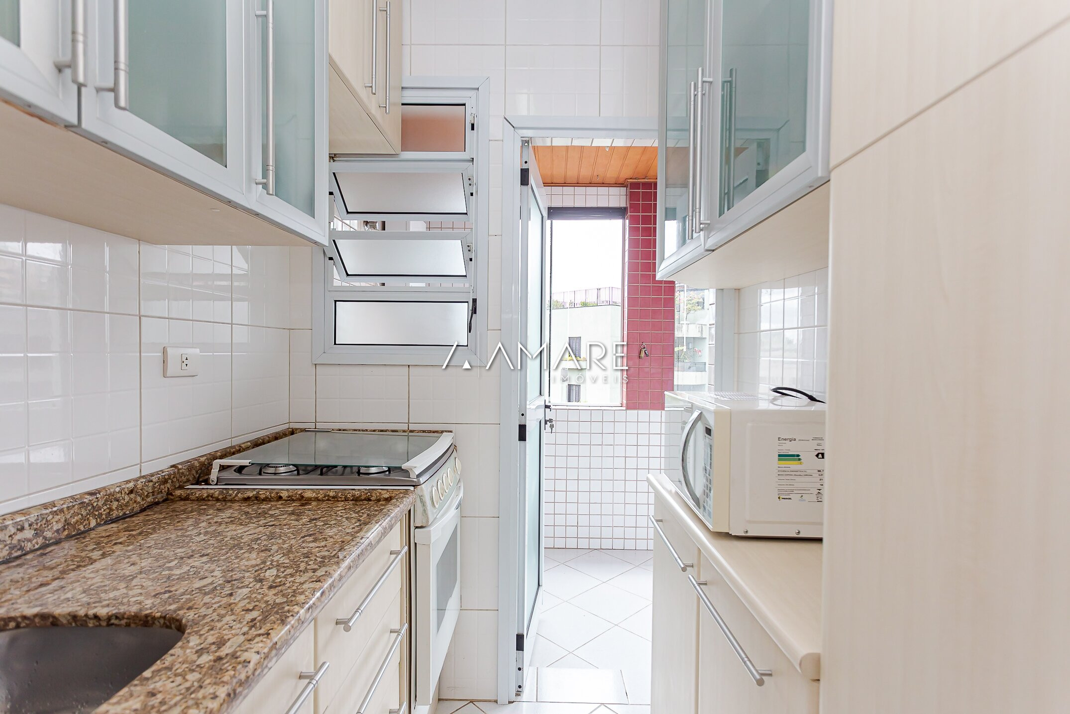 Cozinha com armários e integrada a lavanderia;