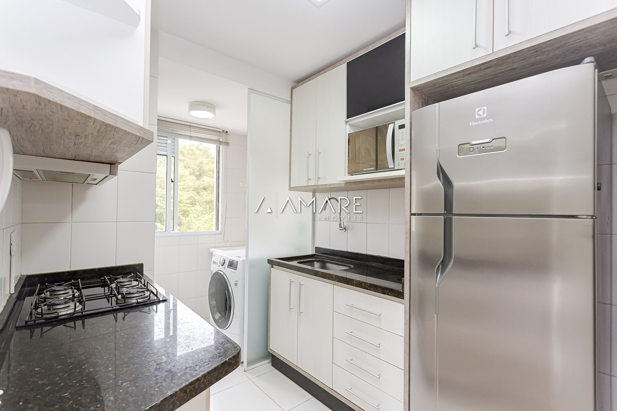 A sacada com churrasqueira é um convite para momentos de lazer e descontração.